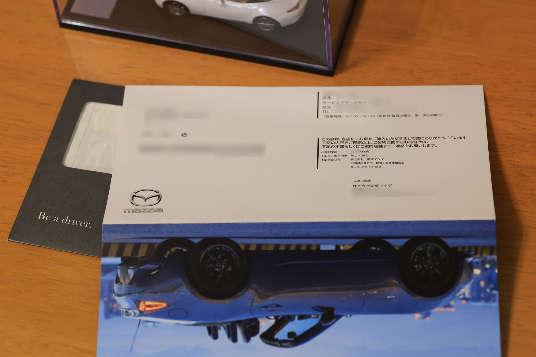 これ、写真も文面もロードスターになってるんだけど、車種の数だけ手紙のバリエーションがあるんだろうなぁ…。