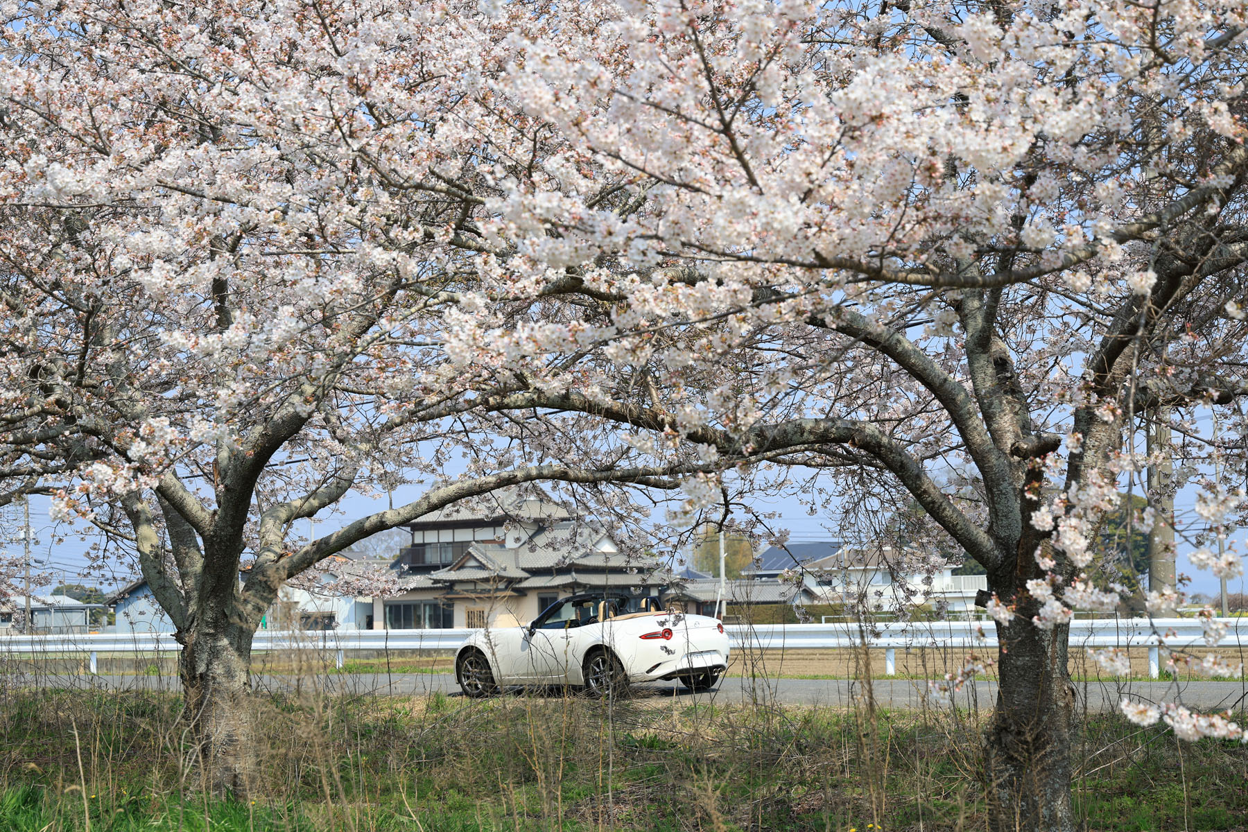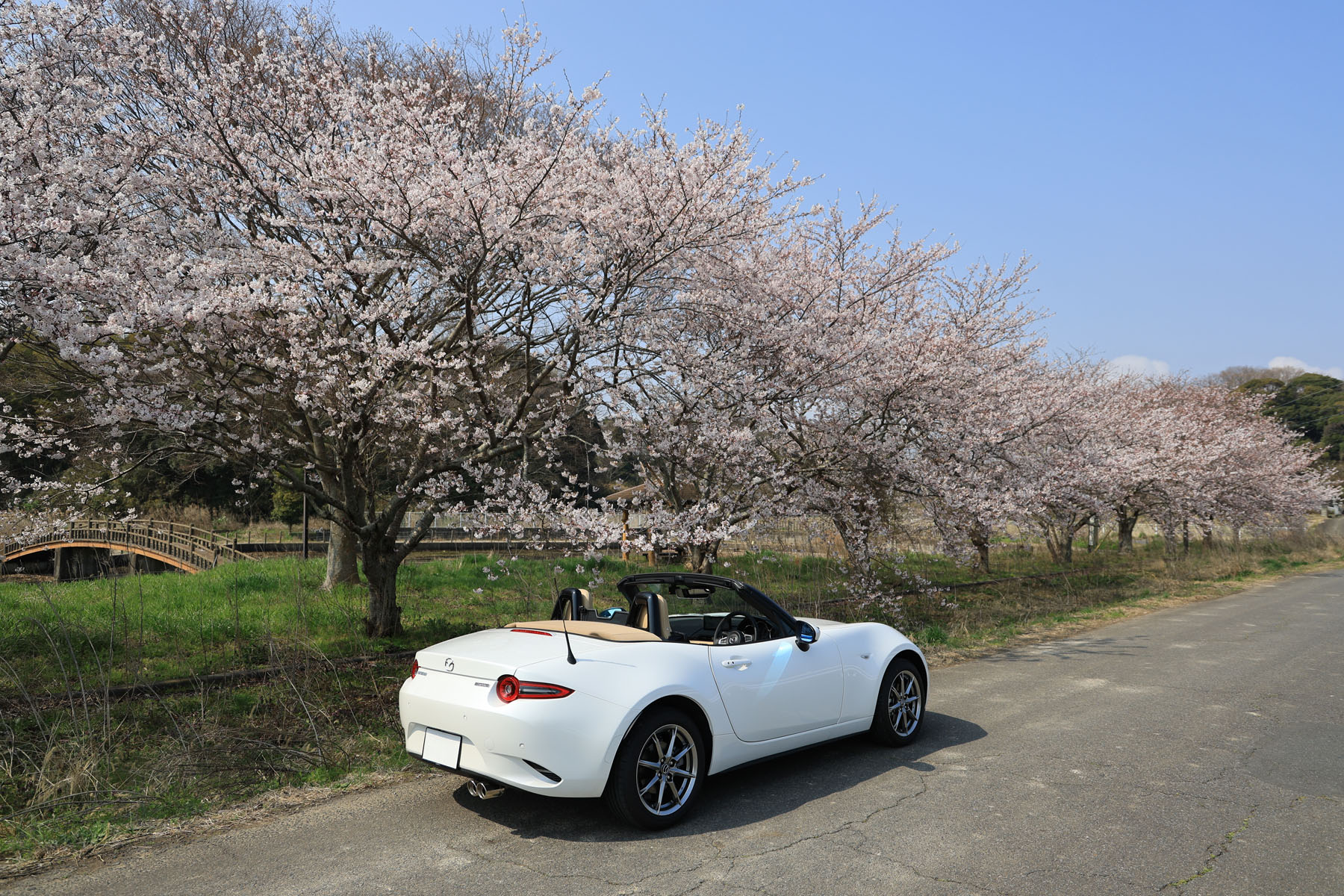 子供の頃に自転車で走っていた道をNDロードスターで走りたくなり、実家方面に行きました。そしたらたまたまなんですが、桜が8分咲くらいでいい感じでした。